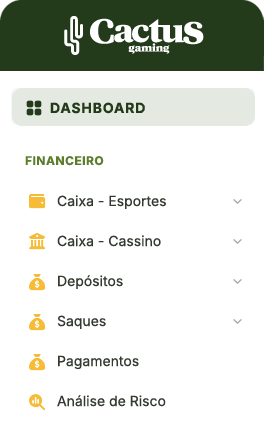 A plataforma White Label da Cactus permite que operadores lancem rapidamente seus negócios de iGaming com marca própria. Com tecnologia robusta e recursos avançados, oferece flexibilidade, escalabilidade e suporte completo para crescimento sustentável.